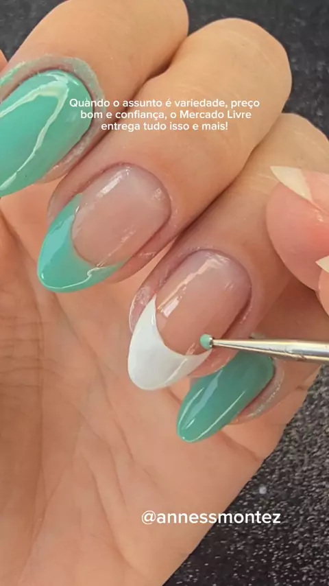 Decoração verde para unha curta . Os esmaltes que usei foram todos da @colorfashionesmaltes Lenda Inevitável Melissa #Unhas #dicasdeunhas #esmalte #unha #nails
