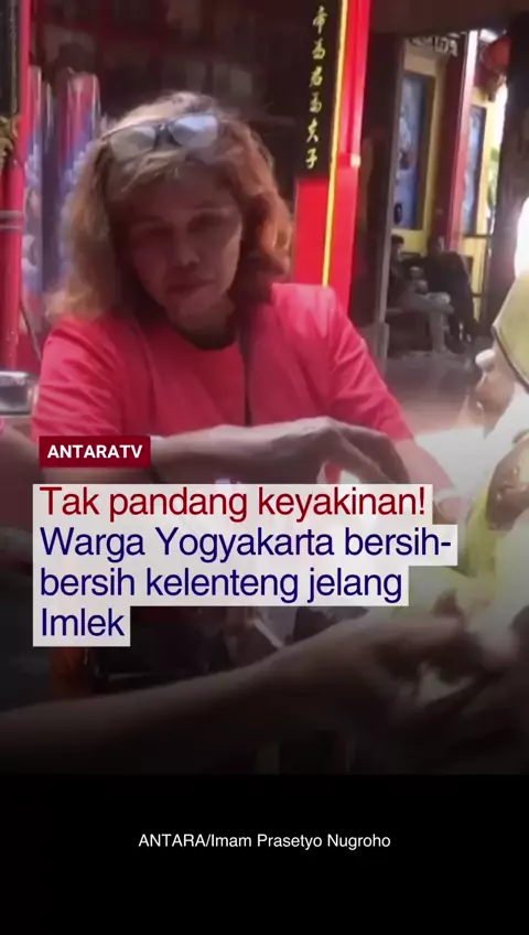 Warga kota Yogyakarta yang tergabung dalam komunitas lintas iman menunjukkan aksi toleransi dengan melakukan bersih-bersih kelenteng Fuk Ling Miau, Kamis (12/2). Aksi solidaritas ini adalah upaya memberikan kenyamanan kepada pemeluk agama Konghucu dalam merayakan Imlek. #imlek #toleransi #yogyakarta #antaratv #solidaritas