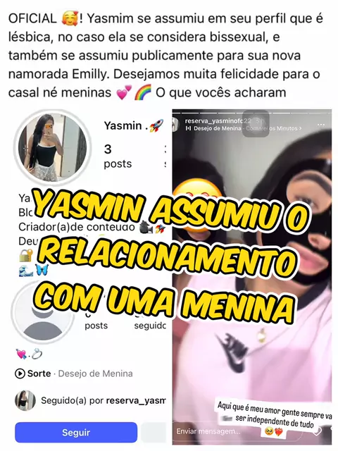 após término com o influenciador Querubin, Yasmin Pestinha colocou uma aliança na bio do insta dela assumindo o relacionamento dela com uma menina chamada Emily. Gostaram? 👀🔥