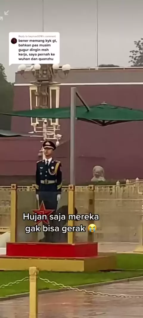Replying to @baymax0016 setiap penjaga ada spare guardnya yg buka payung 😬#mytravellife #china #education #chinaarmy