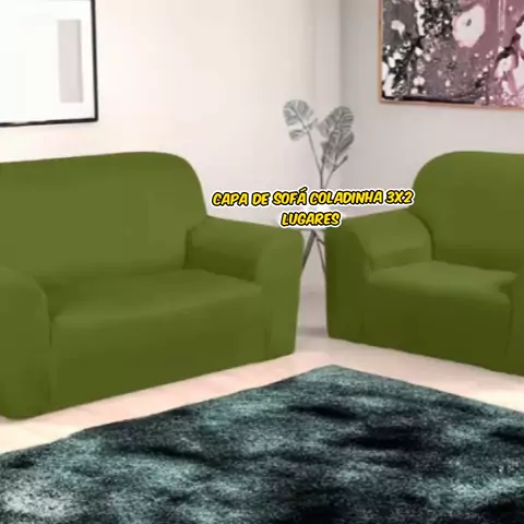 capa de sofá coladinha 3x2 lugares mal7 gel verde oliva você só encontra aqui na loja do kawai então bora comprar.