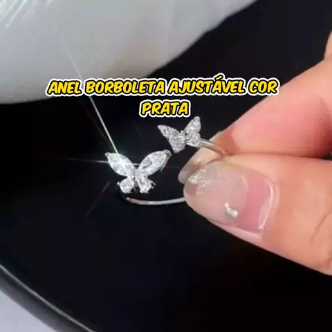 anel borboleta ajustável com brilho cor prata.
