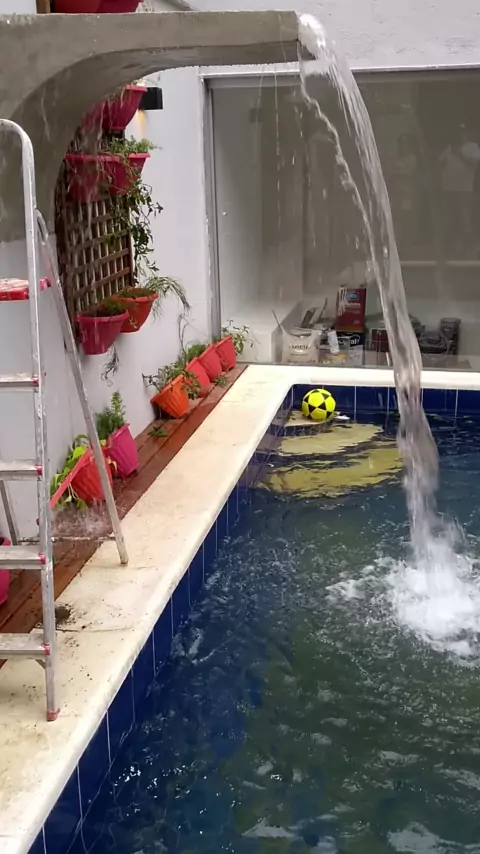 mais um dos meus trabalhos, cascata de piscina feita de concreto #AquiGeralBrilha #decorações #altopadrão