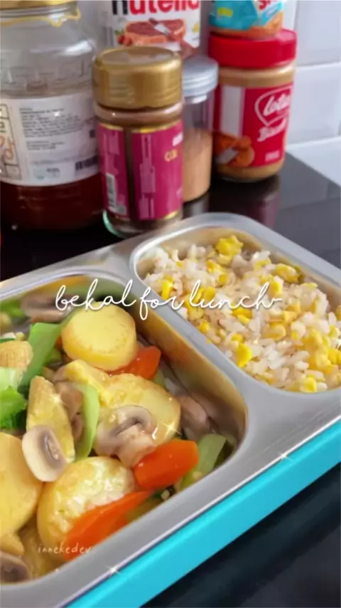 Ide bekal for lunch, simple tapi enak🤩 # Resep Bahan: 3 pakchoi kecil 1 wortel 3 jagung muda Jamur kancing Tofu 1 bawang putih Larutan maizena: 1sdm maizena + sedikit air 1. Pan sear tofu hingga agak kering 2. Tumis bawang putih, masukkan semua sayuran 3. Tambahkan sedikit air 4. Masukkan jamur 5. Bumbui dengan saus tiram, minyak wijen, garam, kaldu jamur 6. Masukkan air larutan maizena, aduk hingga mengental 7. Masukkan tofu, aduk2, matikan api Bahan nasi: Orak arik 1 butir telur, masukka...