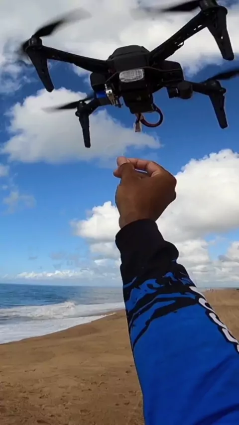 Lançamento com drone de pesca no mar.