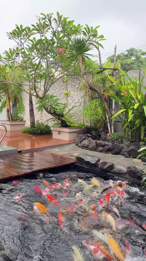 Rehat siang nya disini #kolamikan #suasanasejuksegar #ikankoi