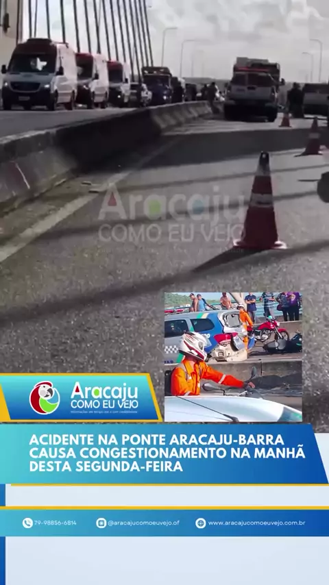 Um acidente de trânsito envolvendo motocicletas e uma viatura da Polícia Militar foi registrado na manhã desta segunda-feira, 23 de dezembro, na ponte Aracaju-Barra, no sentido Aracaju. O incidente provocou um grande congestionamento na região, afetando significativamente o fluxo de veículos e deixando o trânsito lento. Motoristas que trafegam pela área devem redobrar a atenção. Autoridades estão no local para organizar o tráfego e apurar as circunstâncias do acidente.