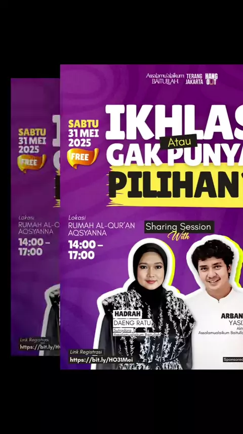 HANGOUT TERANG JAKARTA โ€ผ๏ธ In Collaboration with Assalam'ualaiukm Baitullah Movie Yuk dateng ke Hangout Terang Jakarta Bersama : ๐Ÿ“ŒUstadz Asep Fakhri ๐Ÿ“ŒHadrah Daeng Ratu (Sutradara Assalamualaikum Baitullah) ๐Ÿ“ŒArbani Yasiz (Aktor) ๐Ÿ—“Sabtu, 31 Mei 2025 โฐ14.00-17.00 ๐Ÿ“Rumah Al-Qur'an Aqsyanna FREE! TERBUKA UNTUK UMUM Daftar : ๐Ÿ”—https://bit.ly/HO31Mei Contact Person : +62 853-5522-6866 (Dhila)#arbaniyasiz#assalamualaikumbaitullah#filmasba#terangjakarta#arbanilovers#arbaniloversvvip
