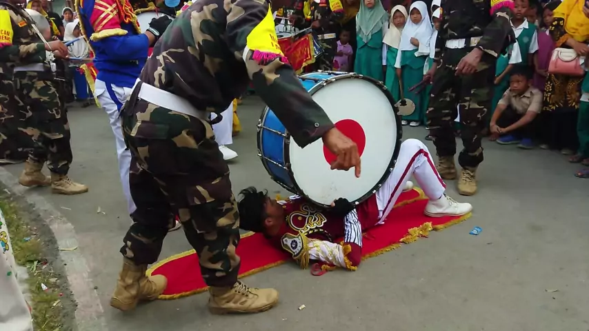 Drumband BANSER Macan Loreng-Mayoret muda ganteng kuat ditindih 4 bas dan mayoret lain #drumband #snack #TatapanJomblo #snackvideo #kontenkreator