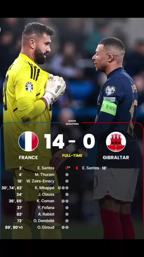 França bate por 14x0 no Gibraltar 🤯⚽🇫🇷 #Futebol #eurocopa #Mbappé