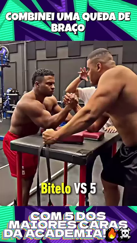 COMBINEI UMA QUEDA DE BRAÇO COM 5 DOS MAIORES CARAS DA ACADEMIA!🔥☠️ . . Deixe um comentário . . . #bitelo #força #humor #bodybuilder