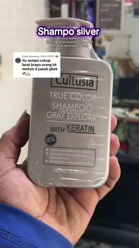 Membalas @PAPA FERDY 😎 bisa dipakai berkali-kali dan bisa untuk banyak orang. Kemasan 180ml#shamposilver#purpleshampoo#haircolour#cultusia#cultusiahaircolor