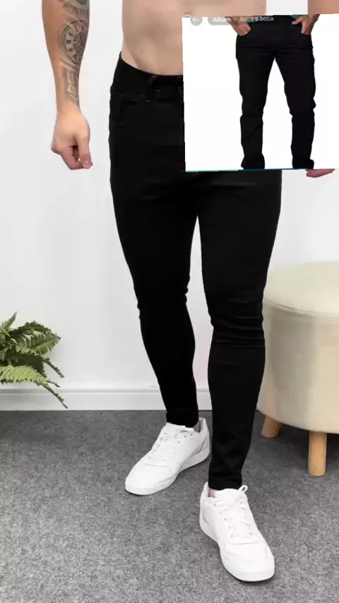 #Calça Jeans Masculina preto Slim Com Elastano Laycra36-48