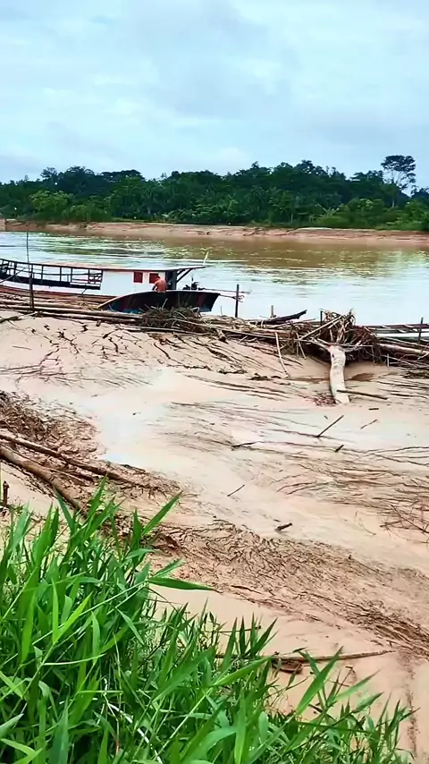 🌊 Durante a vazante nos rios da , as embarcações ficam distantes das casas, presas em áreas mais profundas ou abaixo de barrancos, dificultando o acesso dos moradores. 🪵 Para chegar até os barcos, muitos atravessam troncos de árvores usados como passarelas improvisadas, estreitas e escorregadias, com risco constante de quedas. ⚠️ Além disso, enfrentam a lama espessa da vazante, podendo ficar atolados enquanto transportam mantimentos e equipamentos. 💪 Mesmo com tantos desafios, os ribeirinh