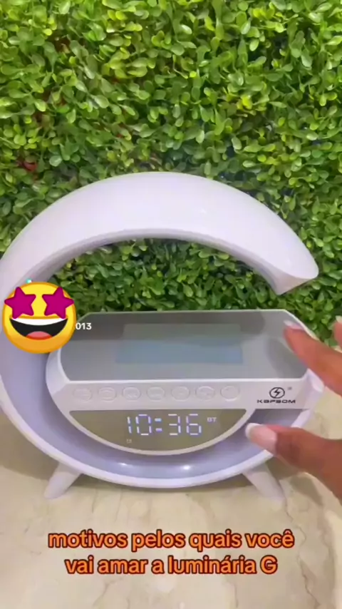 Luminária G. Caixa de Som Caixinha G-Speaker Smart Station com Relógio - Luminária Bluetooth Inteligente Carregador Sem Fio Alarme Luz.#lumináriag#mundodasvariedadesoficial
