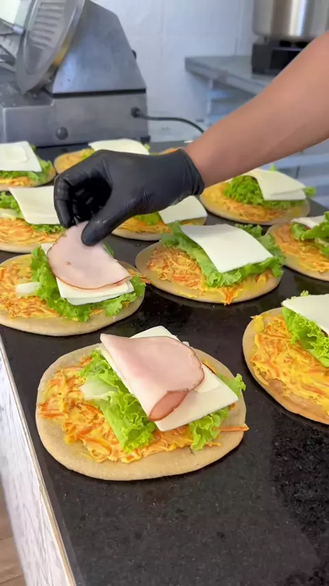 Receita 1 kilo de farinha 500 ml de água 70 ml de óleo 50 gr açúcar mascavo 20 gr sal 10 gr fermento biológico seco Recheio 400 gr Requeijão cremoso coronata 3 cenoura ralada Alface Tomate Queijo coalho coronata Peito de peru