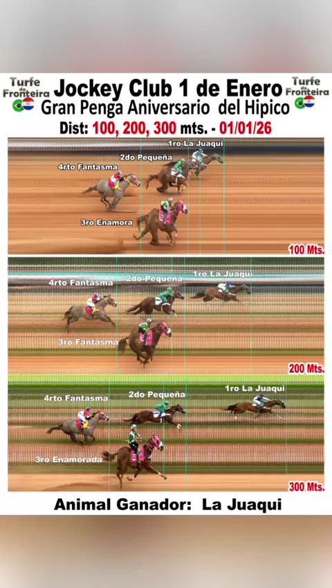 Paco Paco vence o GP Desafio de Fim de Ano no Hipódromo Tajy Poty – Yvyvukua Prova classificatória de 200 metros marcou emoção e velocidade na fronteira O Hipódromo Tajy Poty, em Yvyvukua, foi palco de muita emoção neste dia 27 de dezembro de 2025 com a realização do GP Desafio de Fim de Ano, prova válida pela 1ª classificatória, disputada na distância de 200 metros. Em uma chegada eletrizante, o animal Paco Paco confirmou o favoritismo e cruzou a linha de chegada na primeira colocação.