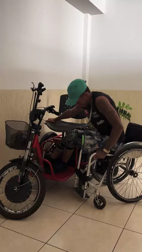 Fazendo a transferência da cadeira de roda para o triciclo🦽😇#motivação