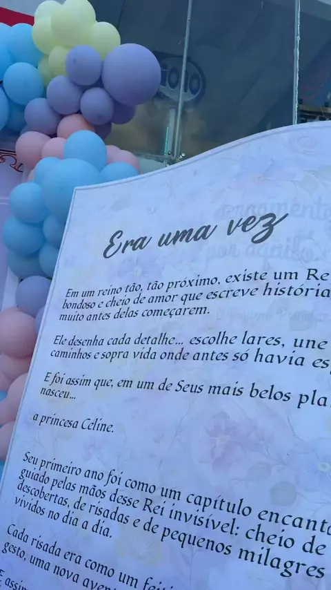 Era uma vez… princesa Celine 📖✨ Sejam bem-vindos ao nosso conto de fadas favorito! Obrigada @girafafestas por transformar esse sonho em realidade no @pirlimkids , com uma decoração simplesmente encantadora e digna de princesa, cheia de magia com @baloesartlatex ✨🎈