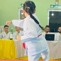 sou atleta de natação e karatê, atualmente estou na faixa laranja, sou uma criança muito ativa