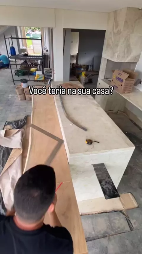 Bancada de madeira rústica anexa à ilha de pedra. Você teria uma dessa? 🤩🤍 Por: @rvarquiteta e @tabuapantaneira •───────────────────────• #arq_designer #arqdesigner #arqdesignermarketplace