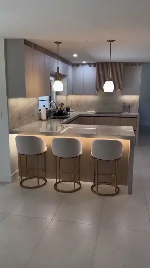Uma cozinha pensada para acolher, com cores suaves, iluminação delicada e cada centímetro planejado para facilitar a rotina. 🍽✨️ Por: @carpentry_fine_angel.corp