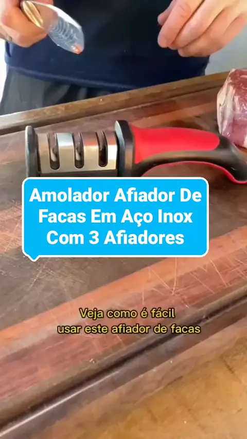 Amolador Afiador De Facas Em Aço Inox Com 3 Afiadores