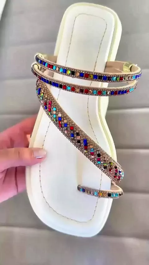 Sandália Rasteirinha Papete de Strass Colorido e Brilho Dedo Ajustável e Palmilha Confort #papetestrass #sandaliaconforto #papeteverão