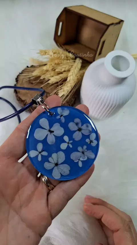 Pingente artesanal com flores naturais de hortênsia 💎✨ #arteemresina #resinart #acessoriosfemininos #floresnaturais #colar