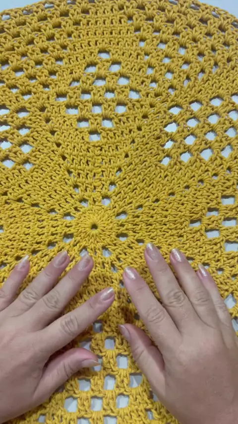 Tutorial tapete rendodo em crochê mostarda final passo a passo