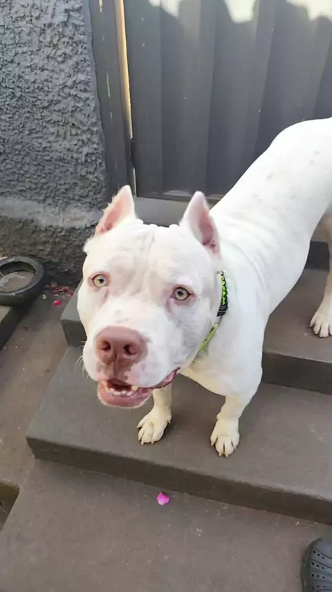 Pitbull branco #animais #paidepet #dogs #animaisdeestimaçao #cachorros