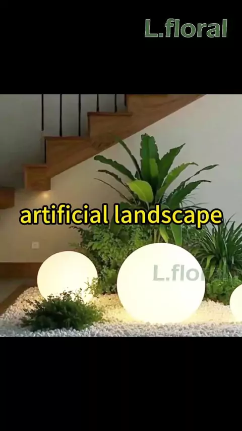 Green plants for landscaping, simulated grass, moss grass, stones, artificial trees,