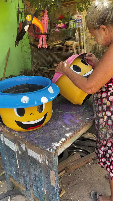 Vasos feitos com pneus #arte #pneus #reciclagem