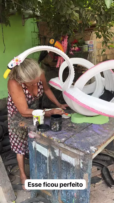 Cisne feito com pneus