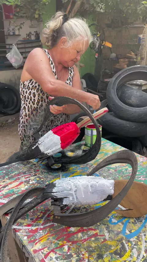 Artes#reciclagem#pneus dia_dia Ajudando minha mãezinha a realiza o sonho dela ❤️