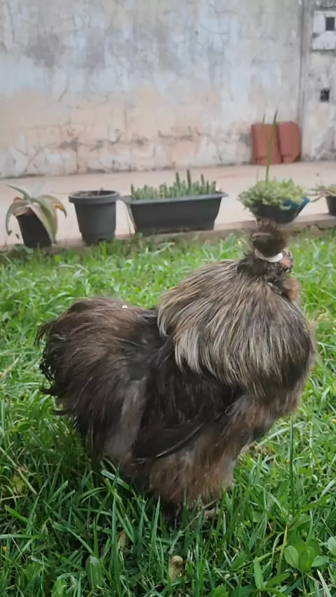 Galo Epitácioenxergando pela primeira vez sem cabelos nos olhos 🐓 #ascocottes #silkie #chiken #sedosa #galinha