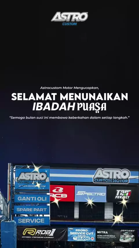 Selamat menunaikan ibadah puasa mamen mamen. Semoga selalu dikuatkan dan diberikan kelancaran dalam menunaikan ibadahnya. kalo mau service motor ke astro yaaa Upgrade aksesoris viral cuma di Astrocustom Konsultasikan keluhan motor mamen Mau service dan pemasangan rapi? Gas ke @astrocustom.motor 🔧 Lokasi offline store : 📍Astrocustom Motor Cimanggis Depok (09.00 - 18.00) 📍Astrocustom Motor Margonda Depok (09.00 - 18.00) 📍Astrocustom Motor Jatiasih Bekasi (09.00 - 18.00)#puasa#astrocustom#rama...