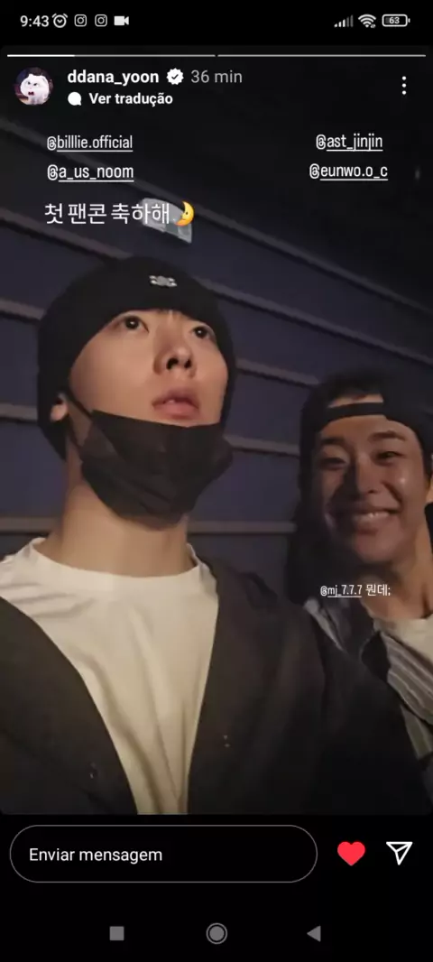 Atualizaรงรฃo de Yoon Sanha em seu story do IG com mj ๐Ÿ’œ #astro #aroha #foryou #explorar #kpop