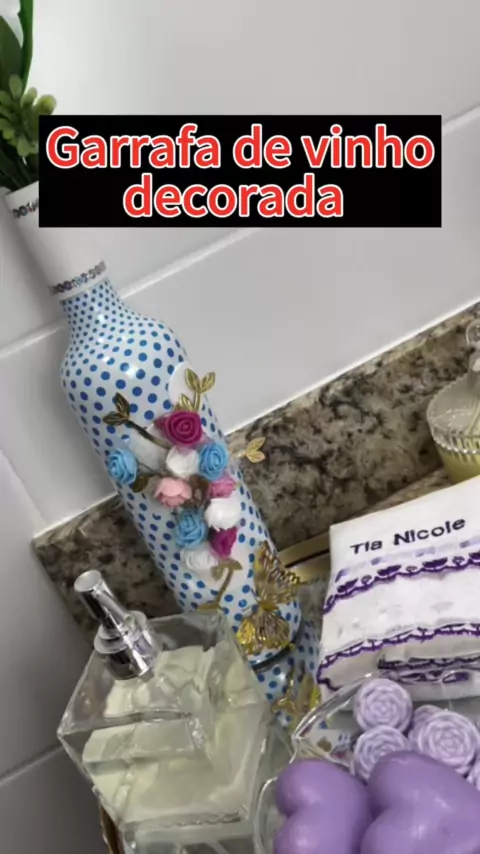 Garrafa de vinho decorada . . . . #reciclagem #utilidadepublica #fyp #comofazer #DIY