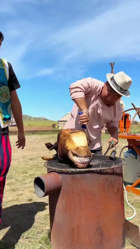P1 - Cabeça de carne picante assada # mukbang # mukbangeatingshow # eating # eatingshow # mongolia # food # cooking