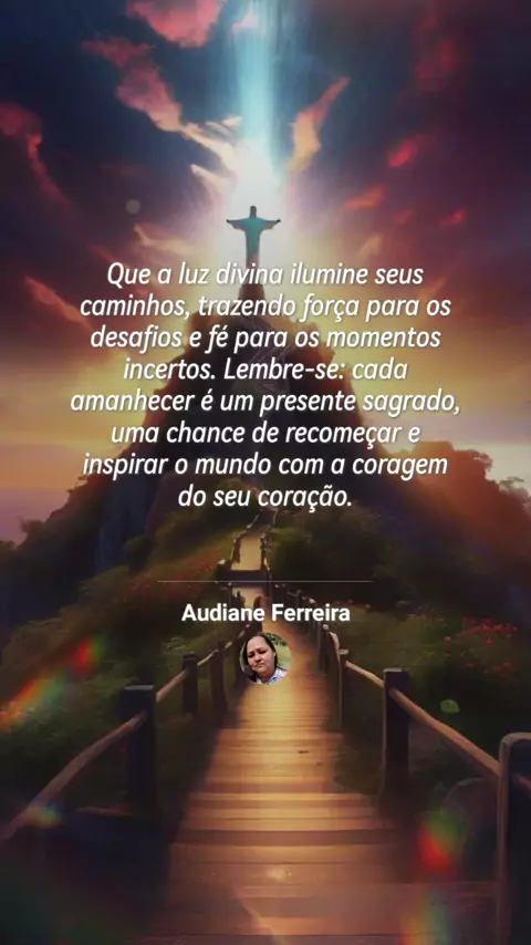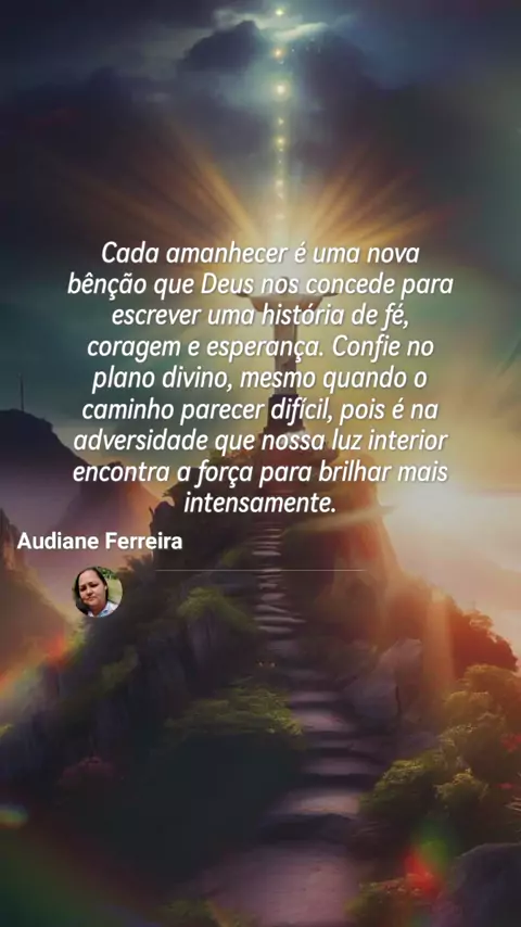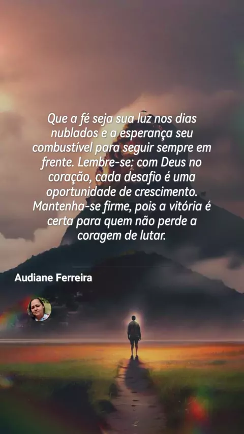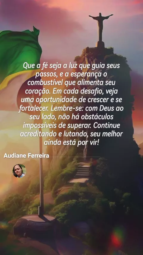 "✨Olá me chamo Audiane✨ sou seguidora de Jesus Cristo ,estou compartilhando Sua mensagem de amor e esperança, em forma de louvores , vamos fazer a diferença, somos o sal da terra e a luz do mundo.