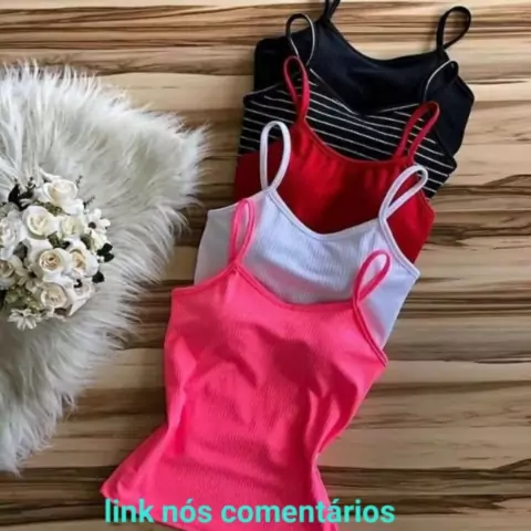 Confira Blusinha Regata Alcinha Feminina Canelada Com Bojo Primavera Verão Moda por R$14,99.