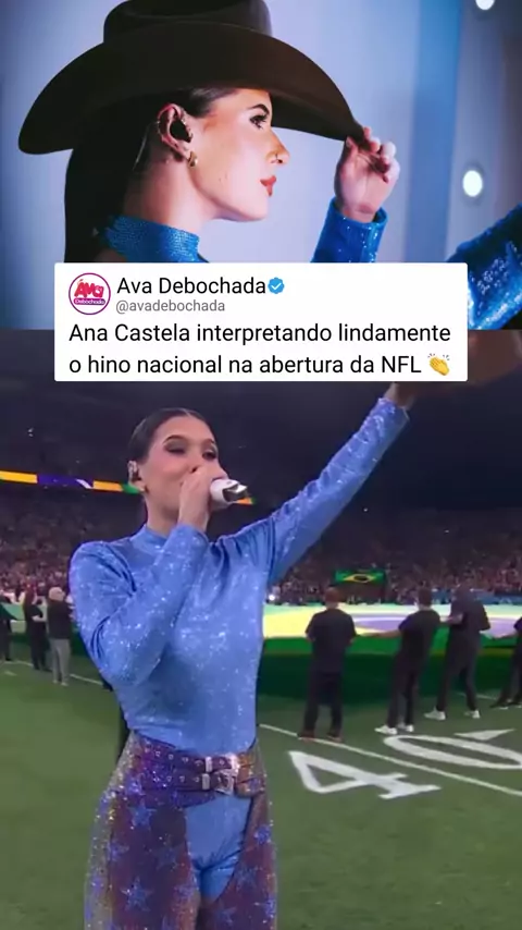Ana Castela entrega tudo que se propõe a fazer, e não foi diferente cantando o Hino Nacional na abertura da NFL. Respeitem a nossa boiadeira! 😍✨ (Reprodução: NFL)