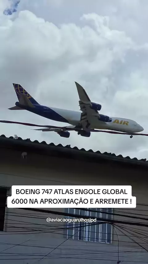 BOEING 747 ATLAS ARREMETE COM TUDO FORÇA TOTAL APÓS NÃO ESTABILIZAR A APROXIMAÇÃO ! #viral #reels #atlasair # #landing