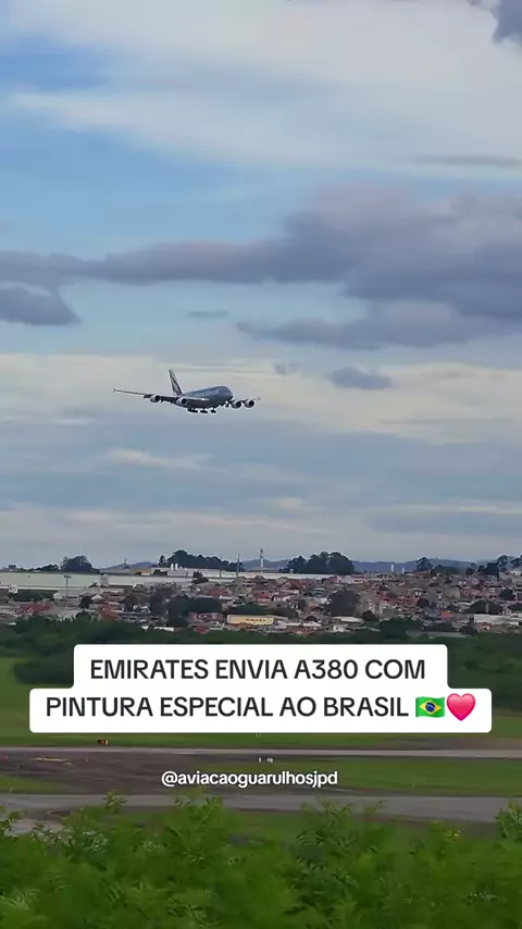 EMIRATES ENVIOU A380 COM PINTURA INCRÍVEL EM GUARULHOS ✈️❤️#aeroporto#emirates#a380#airbus#viral