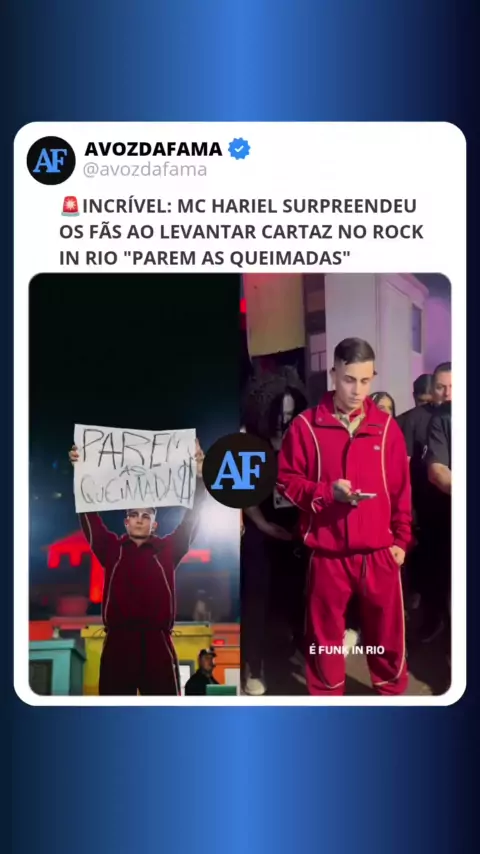 Mc Hariel surpreendeu os fãs ao levantar cartaz no rock in rio "parem as queimadas" #mchariel #queimadas