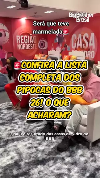 TEMOS OS PIPOCAS! 🍿🍿🍿 E os escolhidos para o #BBB26 foram: Marciele e Brigido de Manaus, Maxiane e Marcelo de Salvador, Jordana e Paulo Augusto de Brasília, Milena e Marcel de São Caetano do Sul, Samira e Pedro de Porto Alegre. 🤩 #CasadeVidro #RedeBB #bbb26 #casadevidro