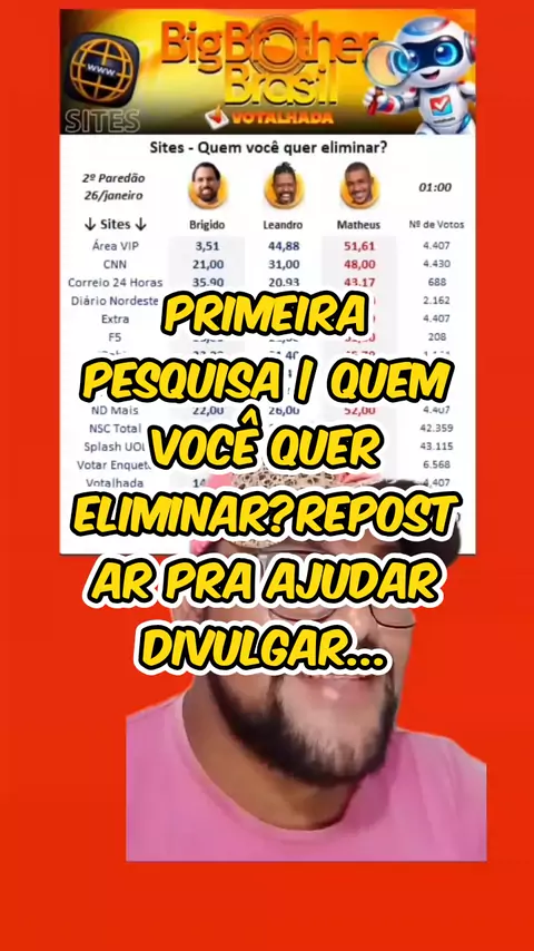 PRIMEIRA PESQUISA | Quem você quer eliminar? Repostar pra ajudar divulgar... #bbb26 #ProvaDoAnjo #paredaobbb #anapaularenault #Votação