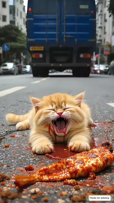 Mother cat shocked as kitten is struck by a heavy truck😿🚛#cat#ai#poorcat#aulialia69_
