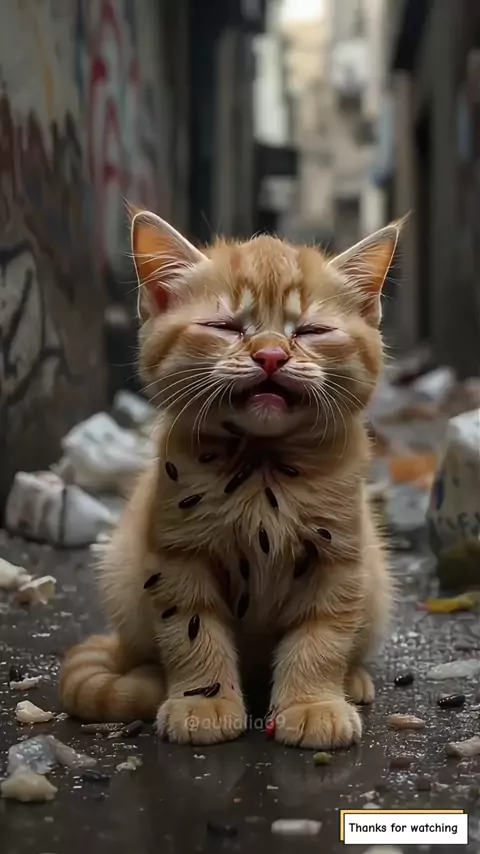 The Mother Cat Panics as Her Kitten’s Body is Covered in Leeches😿😭#cat#ai#poorcat#aulialia69_
